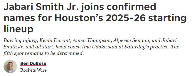 休媒指出,火箭队的终末一个首发东谈主选主要有三个弃取:后卫谢泼德、锋线伊森和中锋亚当斯。最终,这可能取决于比赛的对位情况或乌度卡的作风偏好,何况可能会证据敌手的不同而变调。