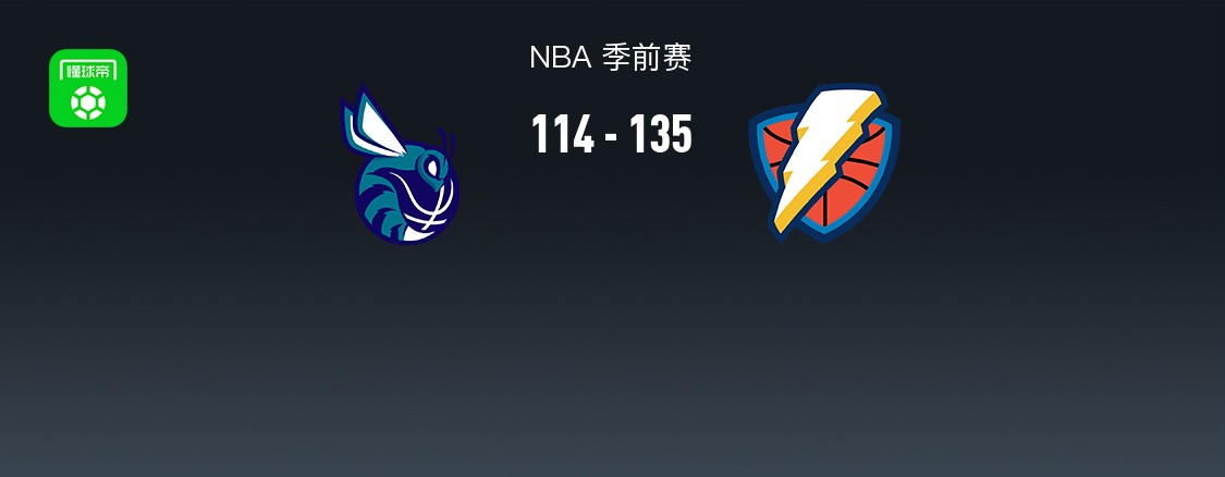 第四节黄蜂KJ-辛普森拿下7分,雷霆贾皆安-戈特曼拿下13分,最终黄蜂114-135不敌雷霆