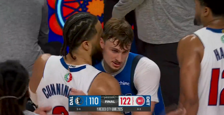 终末1分40秒,弗拉格突到禁区却传球,马绍尔错失三分,克莱续命三分也打铁,坎宁安轰进三分杀死比赛体育集锦,最终活塞打败独行侠,赛后坎宁安和弗拉格拥抱致敬。