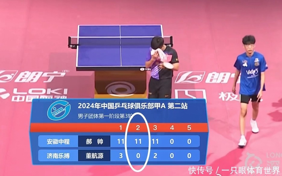 在男团第一阶段第三轮的比赛中,安徽中程3比1打败了济南乐博,其中在第二场男单对决里,现年41岁的郝帅久违亮相,他不战而胜,3比0横扫汪佳男,匡助安徽中程拿到相配关节的一分。