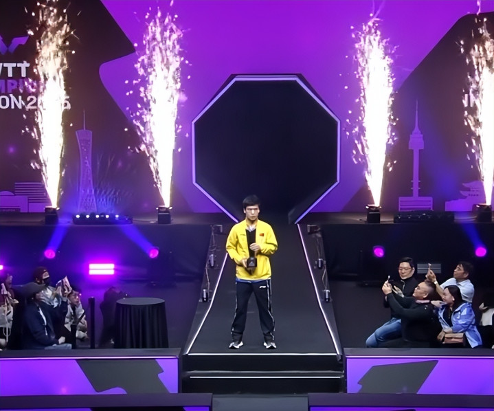 说真话,看多了WTT受奖典礼的我皆不知谈要回顾干什么,由于语言欠亨,向鹏虽然更不知谈,他回顾之后被套路了,摆布的不雅众把他拉去,大庭广众之下合起了影。